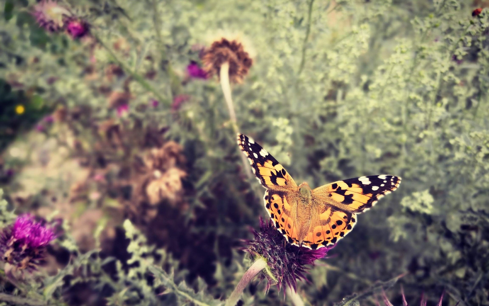 Čeká třepetání křídel, ale to se nestane. Místo toho motýl pomalu, jako pírko holubice, klesá k zemi. Tiše, nehlučně. Zachvěje se jen jediné stéblo trávy.